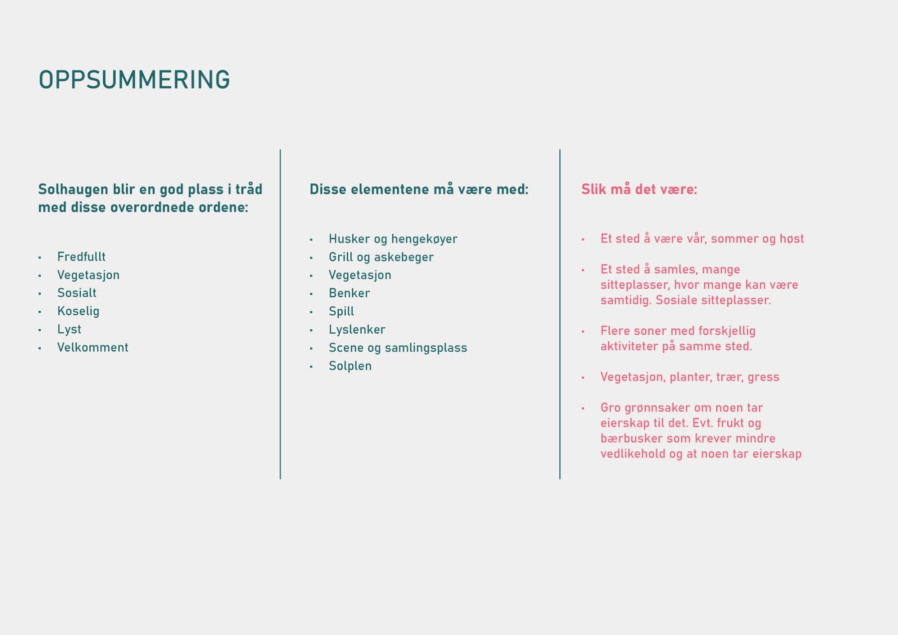 Oppsummering fra brukermedvirkning i Solhaugenprosjektet
