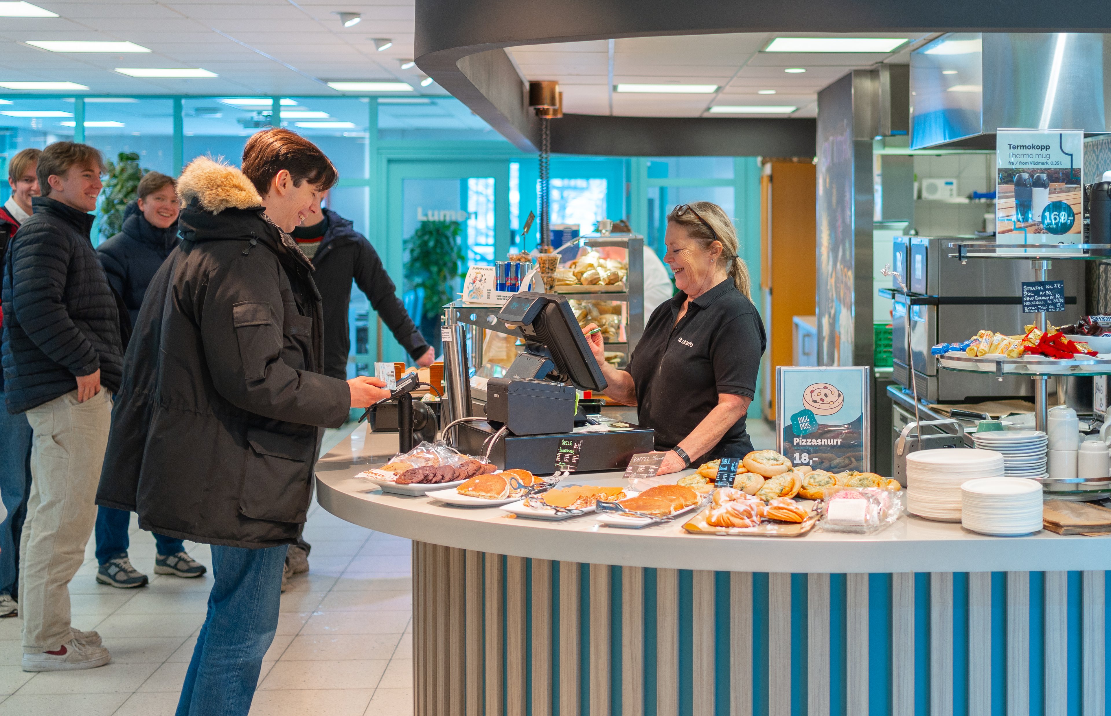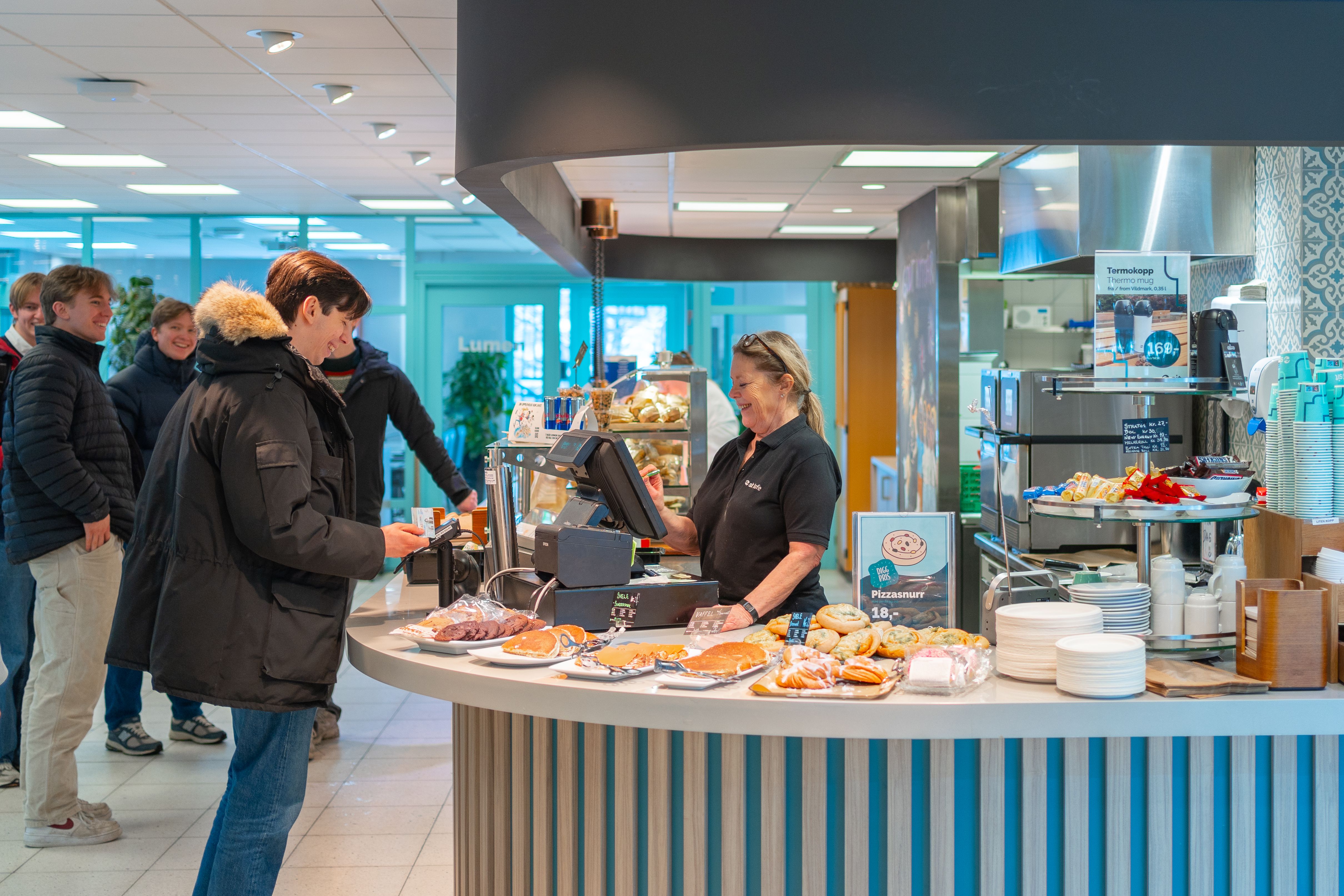 We have 14 cafeterias, four coffee bars, two kiosks, one pizza restaurant, and three self-service kiosk solutions spread across various campuses.