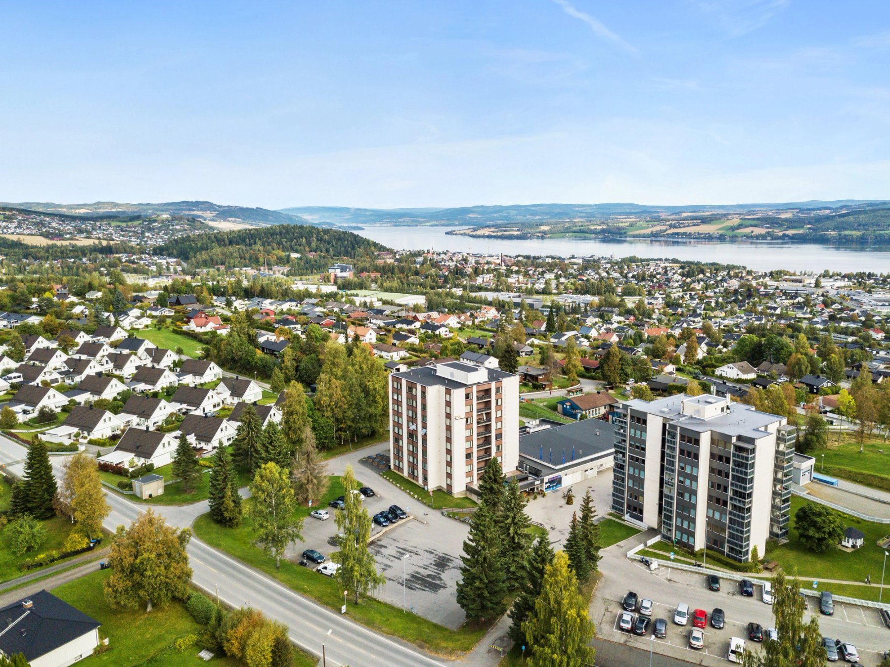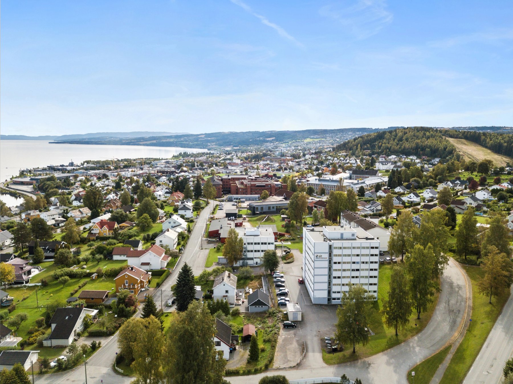 Sørbyen student housing is located south and uphill from central Gjøvik, about 2 km from NTNU campus. There are buses connecting Sørbyen to NTNU, and with a bicycle the trip takes only 5-6 minutes. Sørbyen consists of a housing block with 80 rooms in shared flats, 8 studio apartments and 24 one-bedroom apartments. A grocery store, hairdresser and a restaurant are located in the same area. There are parking slots for bicycles in the area, and parking spaces for cars can be booked through our website.